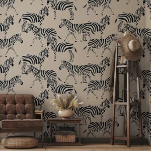 Zebra Safari Wallpaper Mural Black & White Jungle Nursery Decor