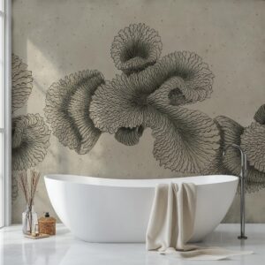Abstract Sepia Coral Mural: Tropical Underwater Removable Wallpaper for Stylish Home Decor