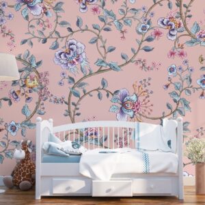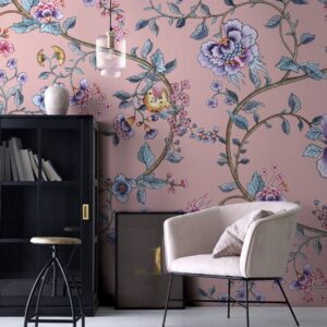 Asian Floral Wallpaper: Pink & Green Chinoiserie Decor