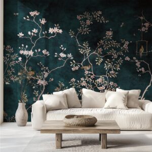 Elegant Chinoiserie Wallpaper Mural: Peacocks, Birds, and Floral Asian-Inspired Design