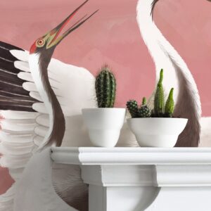 Elegant Japanese Crane Wallpaper Mural: Chinoiserie Heron Print for Tropical Home Decor