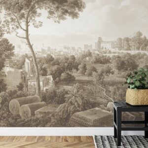 Sepia Italian Landscape Mural: Temple Ruins Wall Decor
