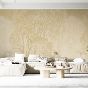 Tree Wallpaper ? Forest Line Art Wall Mural, Engraved Treetops Nature-Inspired Home D?cor
