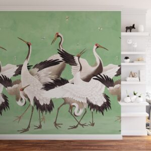 Elegant Tropical Crane Wallpaper: Removable Heron Print Mural for Living Room Decor